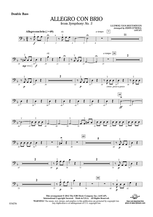 "Allegro Con Brio - Double Bass" Sheet Music by Ludwig van Beethoven