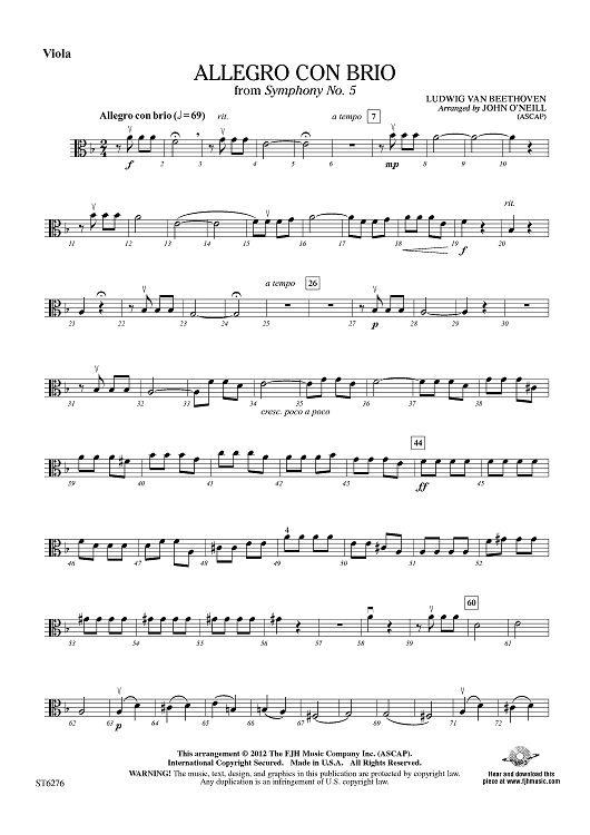 Digital Sheet Music for Allegro Con Brio - Viola by Ludwig van Beethoven, John O'Neill scored for String Orchestra; id:432022