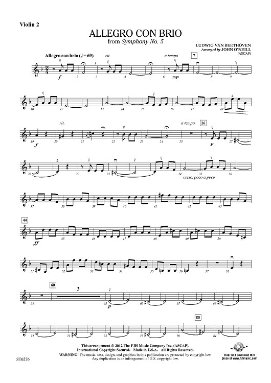 Digital Sheet Music for Allegro Con Brio - Violin 2 by Ludwig van Beethoven, John O'Neill scored for String Orchestra; id:432020