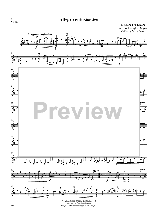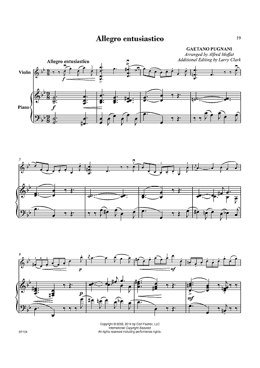 Digital Sheet Music for Allegro entusiastico by Gaetano Pugnani, Alfred Moffat scored for Violin/Piano; id:450315