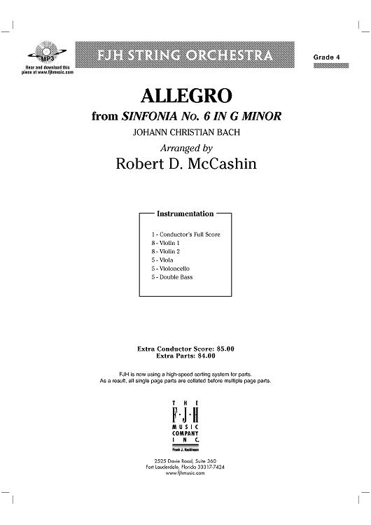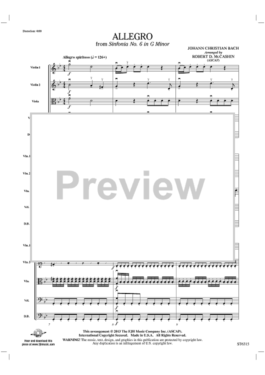 Digital Sheet Music for Allegro from Sinfonia No. 6 in G Minor - Score by Johann Christian Bach, Robert D. McCashin scored for String Orchestra; id:437017