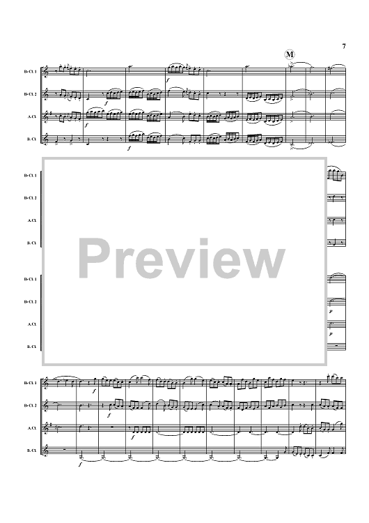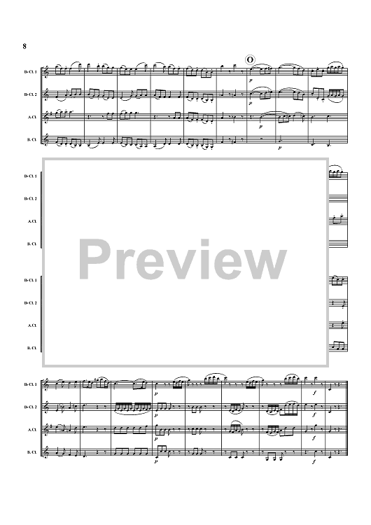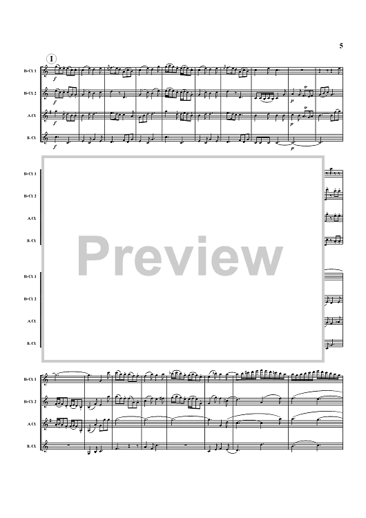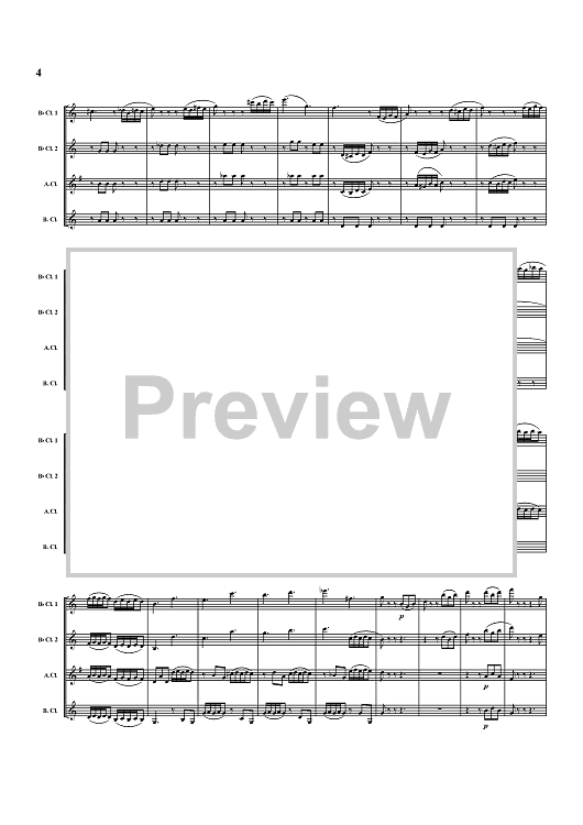 Digital Sheet Music for Allegro from "String Quartet 17" - Score by Wolfgang Amadeus Mozart, Herbert G. Roselle scored for Clarinet Quartet; id:413957