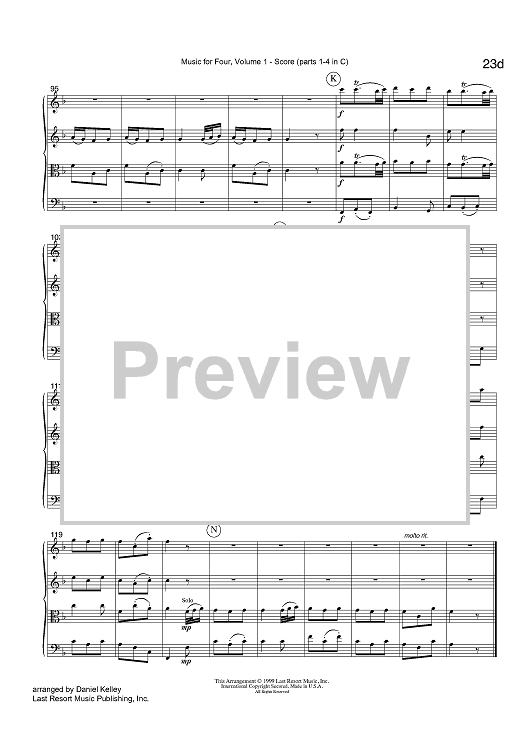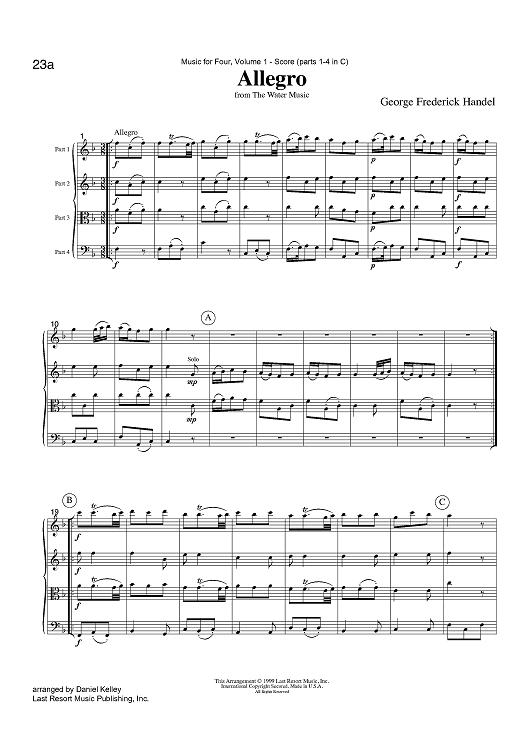 Digital Sheet Music for Allegro - from The Water Music - Score by , George Frideric Handel, Daniel Kelley scored for Instrumental Quartet; id:423697