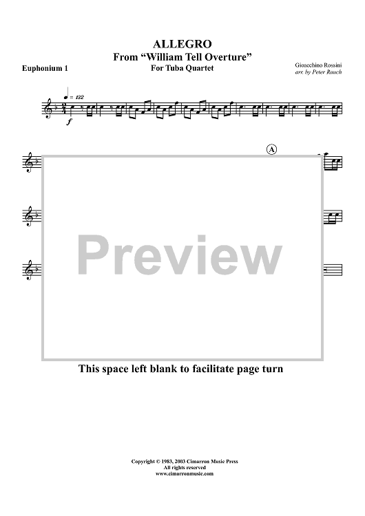 Digital Sheet Music for Allegro from "William Tell Overture" - Euphonium 1 BC/TC by Gioachino Rossini, Peter Rauch scored for Tuba Quartet; id:316225