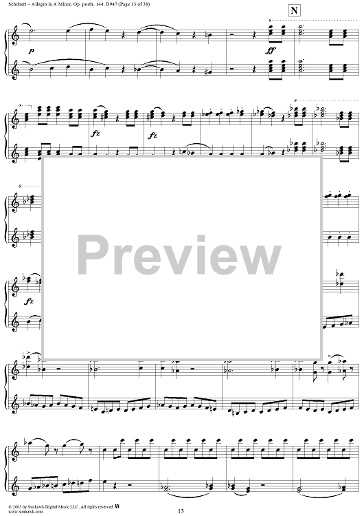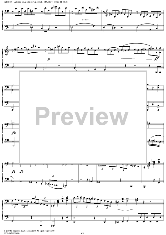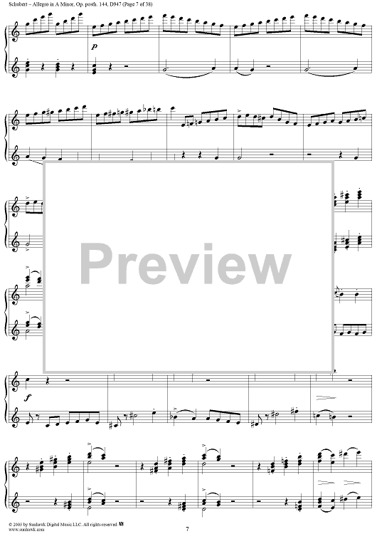 "Allegro in A Minor, Op. posth144" Sheet Music by Franz Schubert