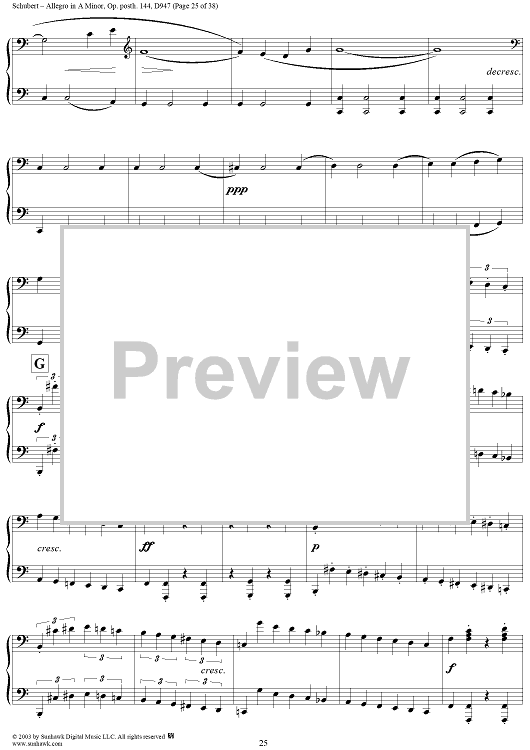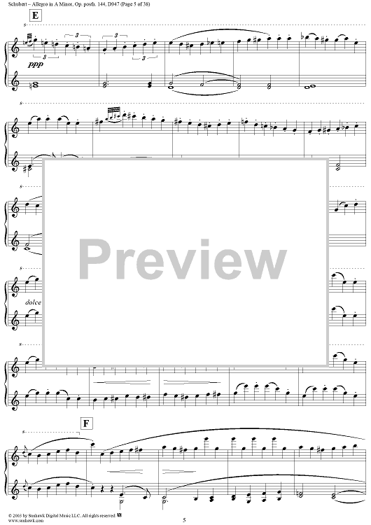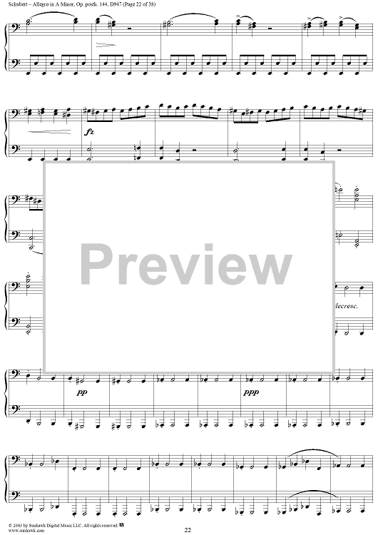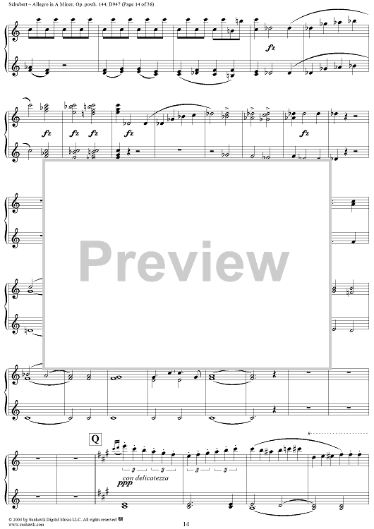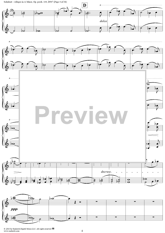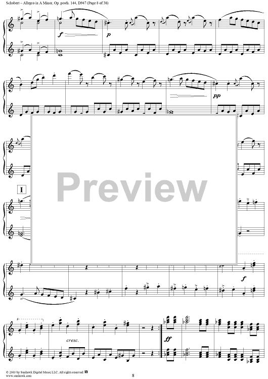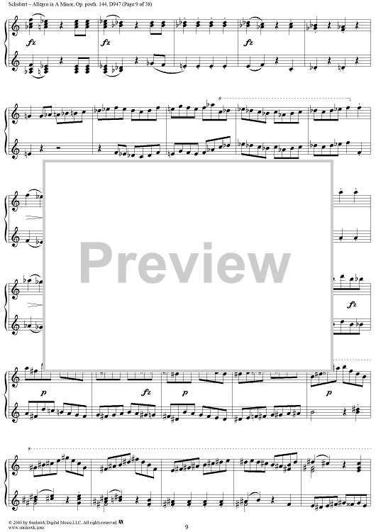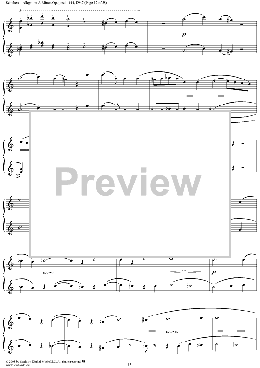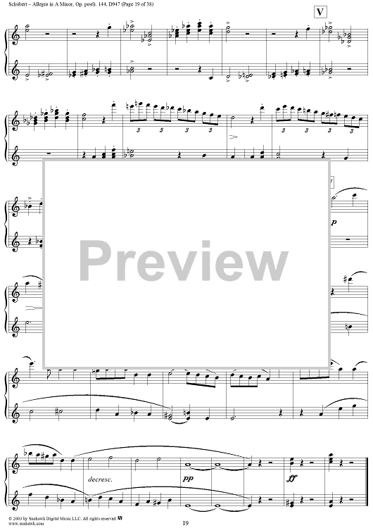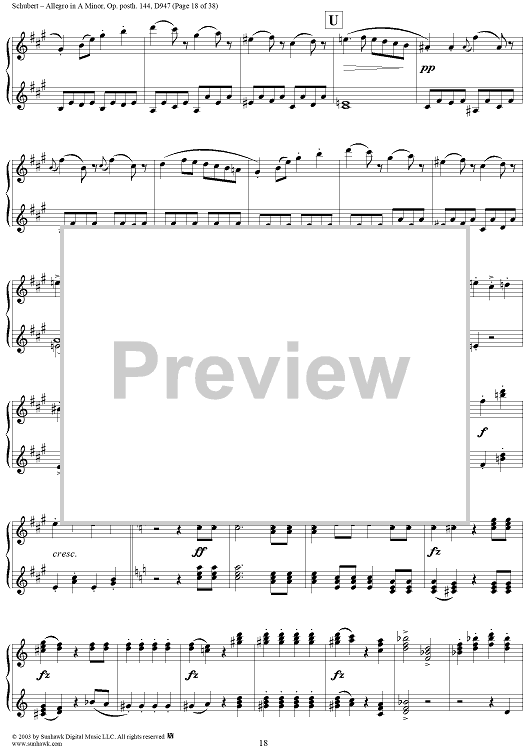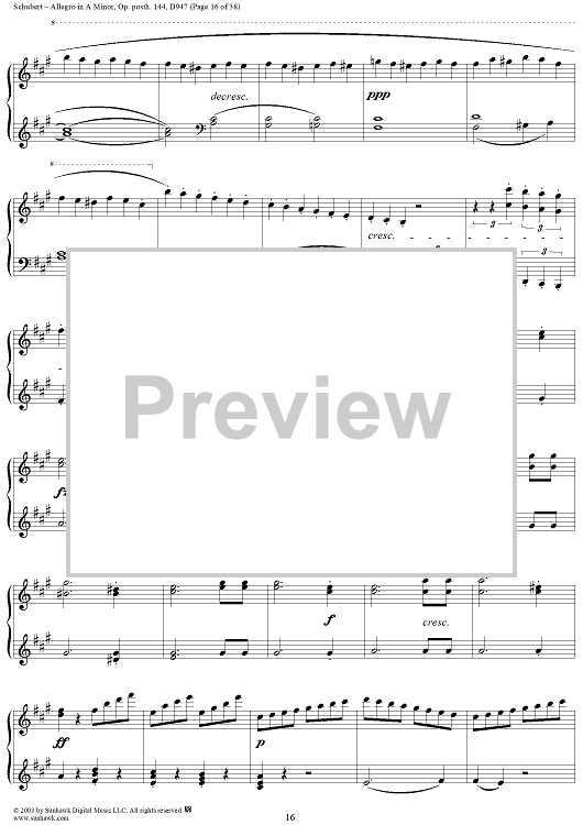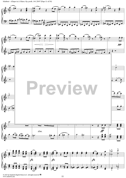 Digital Sheet Music for Allegro in A Minor, Op. posth144 by Franz Schubert scored for 1 Piano, 4 Hands; id:296129