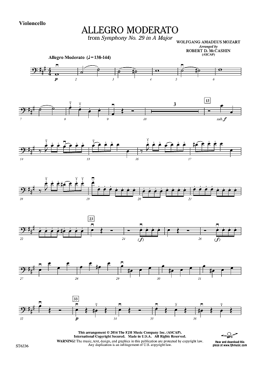 Digital Sheet Music for Allegro Moderato from Symphony No. 29 in A Major - Violoncello by Wolfgang Amadeus Mozart, Robert D. McCashin scored for Orchestra; id:446926