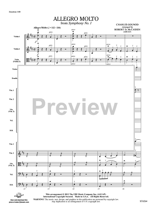 Digital Sheet Music for Allegro Molto from Symphony No. 1 - Score by Charles Gounod, Robert D. McCashin scored for String Orchestra; id:431925