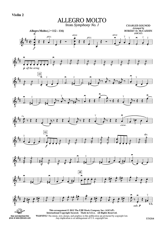 "Allegro Molto from Symphony No. 1 - Violin 2" Sheet Music by Charles Gounod