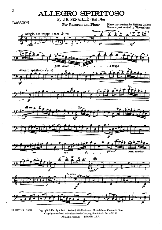 "Allegro Spiritoso - Bassoon" Sheet Music by Jean Baptiste Senallié