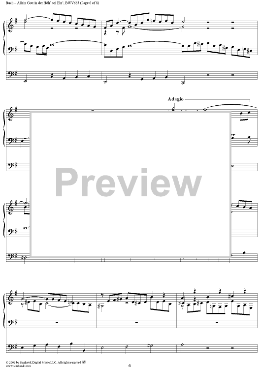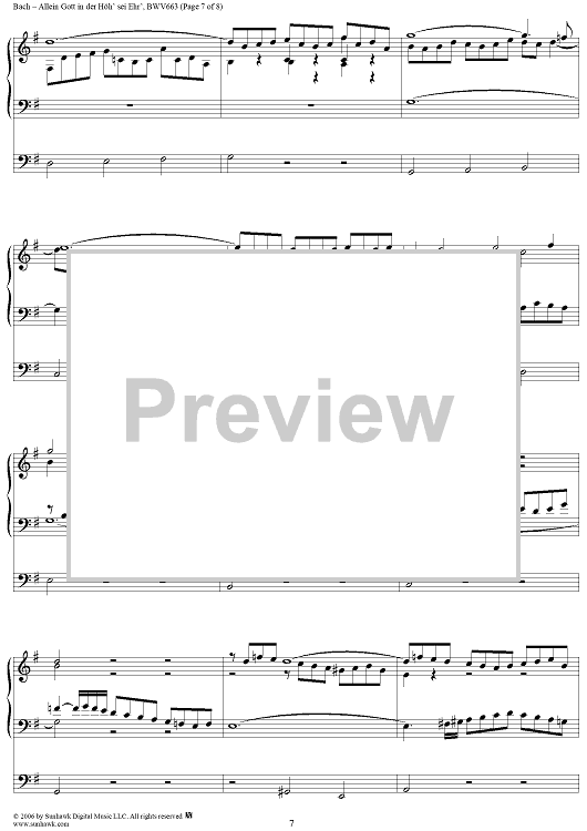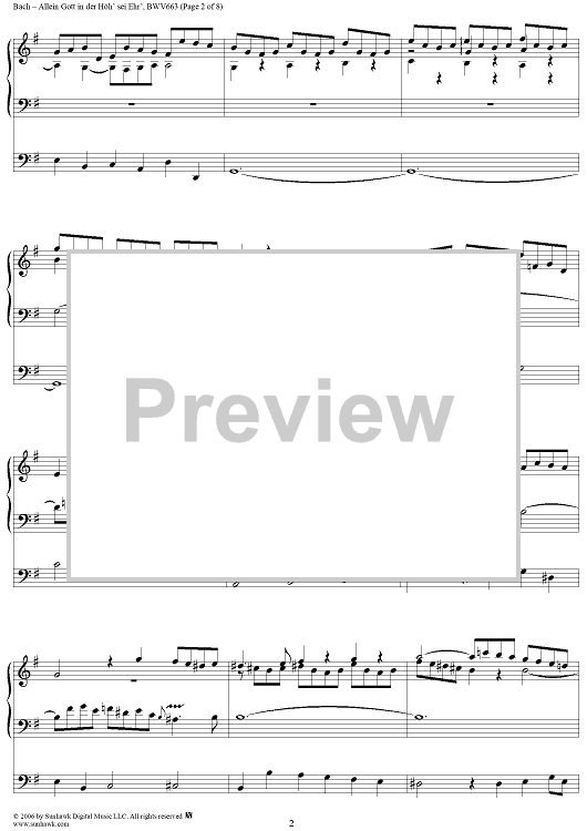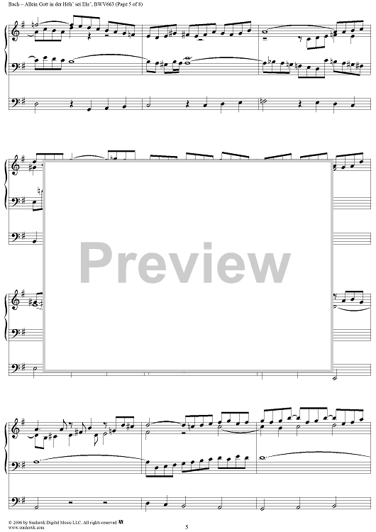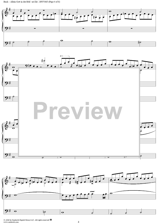 Digital Sheet Music for Allein Gott in der Höh' sei Ehr', No. 13 from "18 Leipzig Chorale Preludes", BWV663 by Johann Sebastian Bach scored for Organ Solo; id:319026