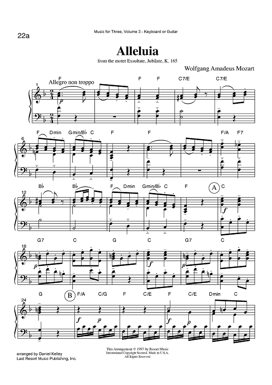 Digital Sheet Music for Alleluia - from the motet Exsultate, Jubilate, K. 165 - Keyboard or Guitar by , Wolfgang Amadeus Mozart, Daniel Kelley scored for Instrumental Trio; id:424074