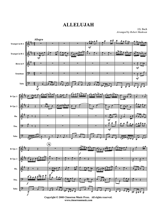 Digital Sheet Music for Allelujah - Score by Robert Madeson, Johann Sebastian Bach scored for Brass Quintet; id:417527