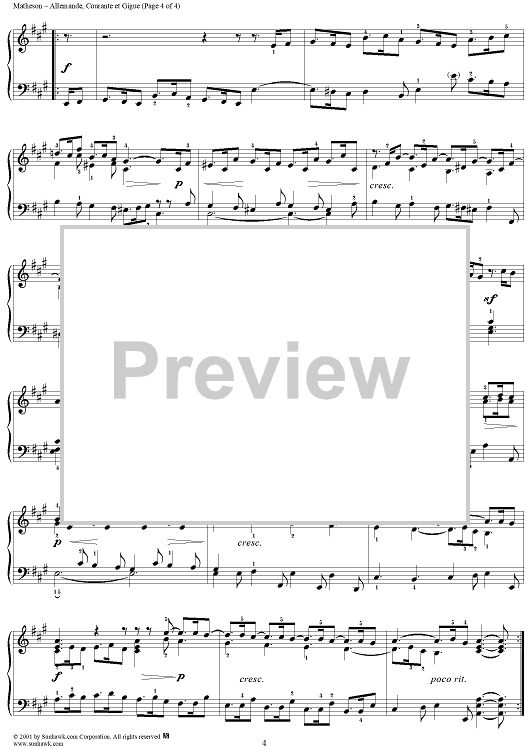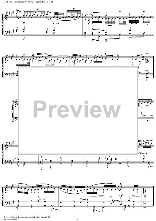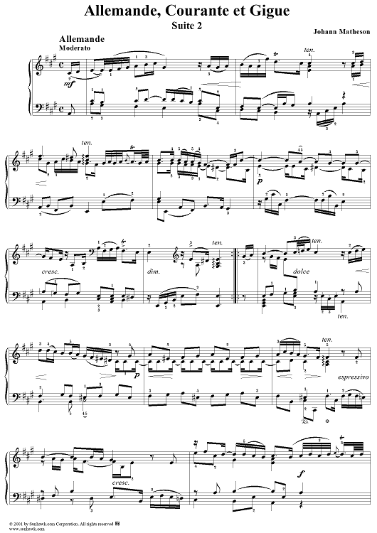 Digital Sheet Music for Allemand, Courante et Gigue, Suite 2 by Johann Mattheson scored for Piano Solo; id:265633