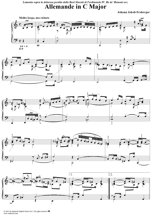 Digital Sheet Music for Allemande (Lamento) in C Major by Johann Jakob Froberger scored for Piano Solo; id:294798