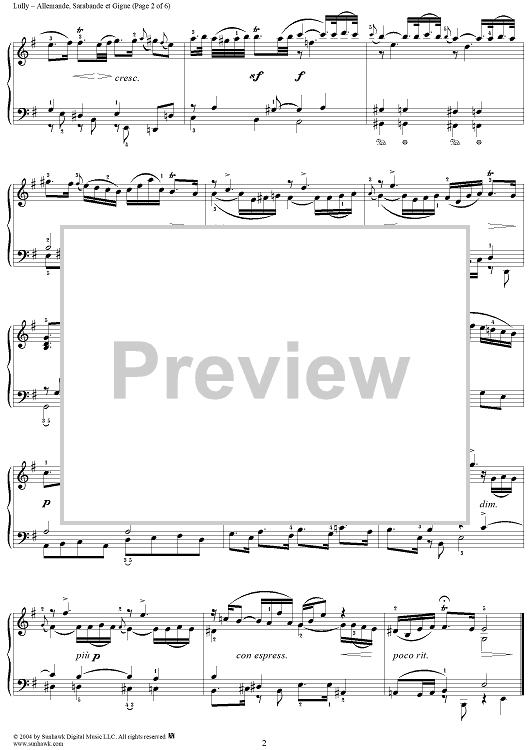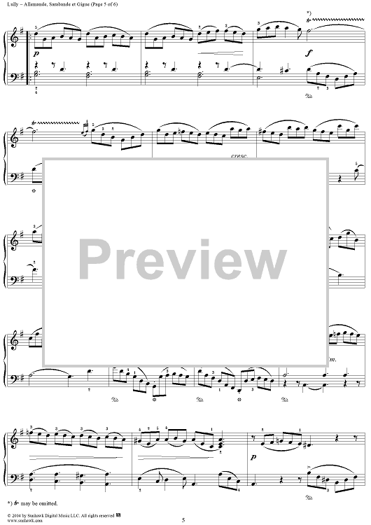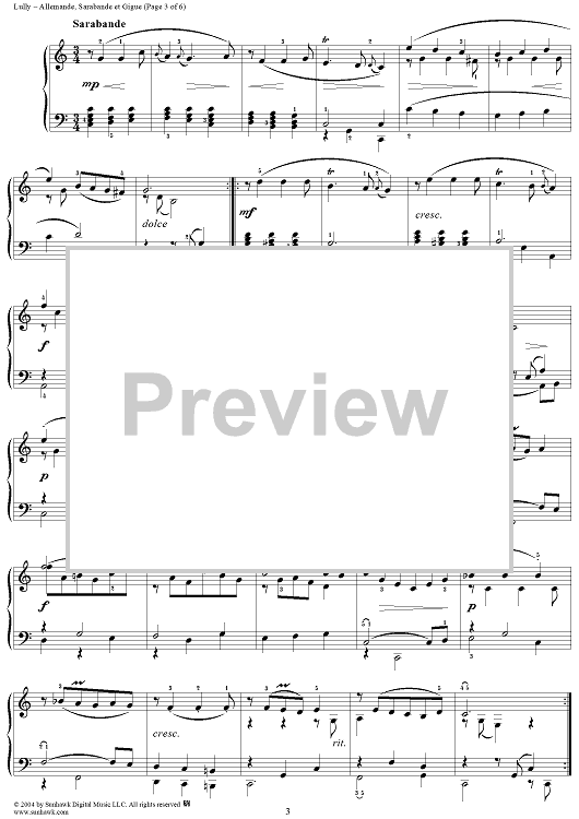 Digital Sheet Music for Allemande, Sarabande et Gigue by Jean-Baptiste Lully scored for Piano Solo; id:295686