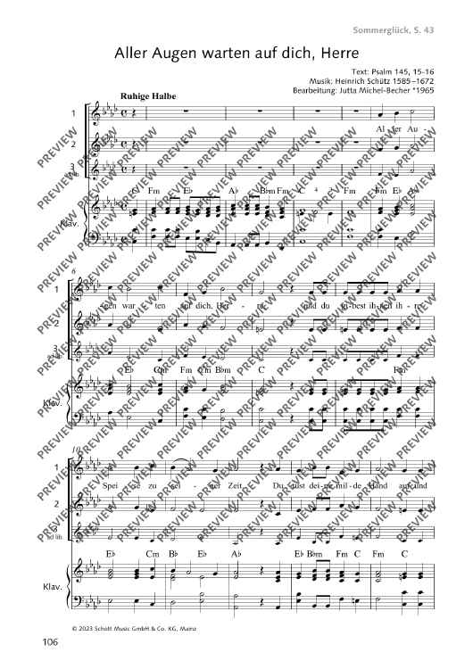 Digital Sheet Music for Aller Augen warten auf dich, Herre by Heinrich Schuetz, Jutta Michel-Becher scored for Mixed Choir (sab) And Piano; id:500029