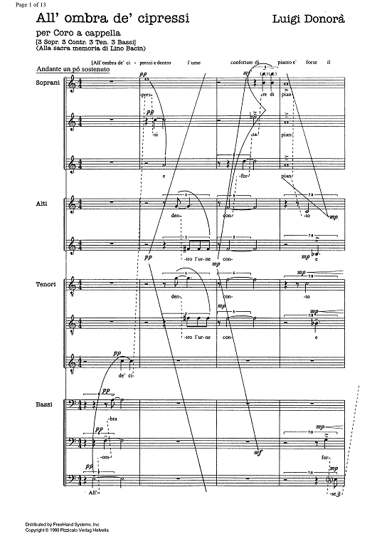Digital Sheet Music for All'ombra dei cipressi by , Luigi Donorà scored for SATB Choir; id:333855