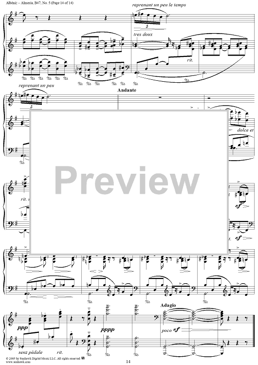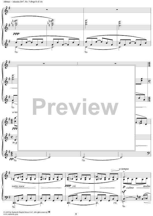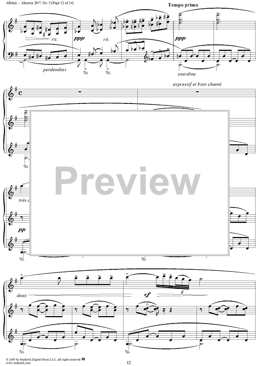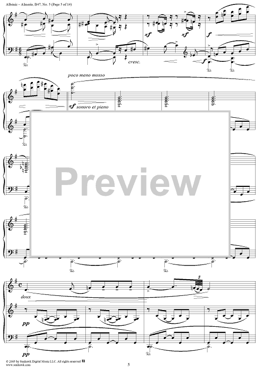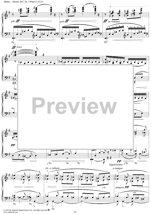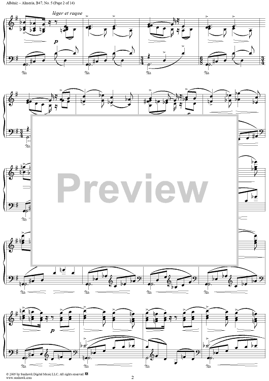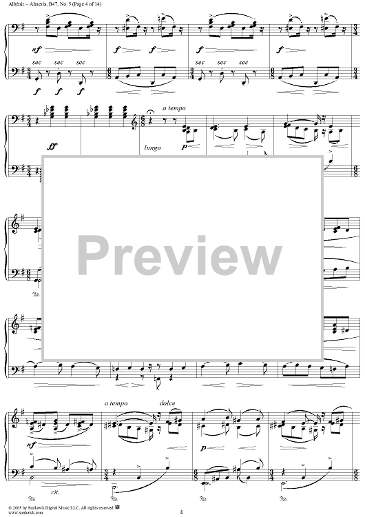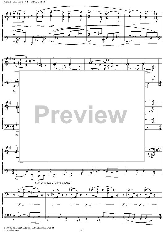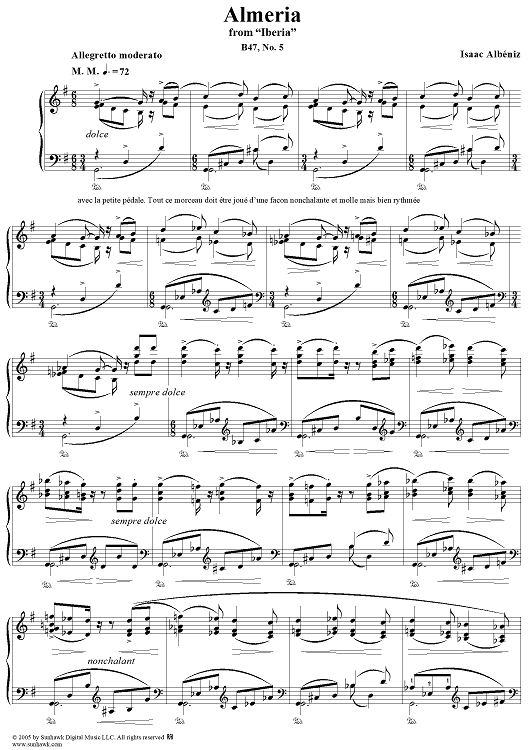 Digital Sheet Music for Almería by Isaac Albéniz scored for Piano Solo; id:293692