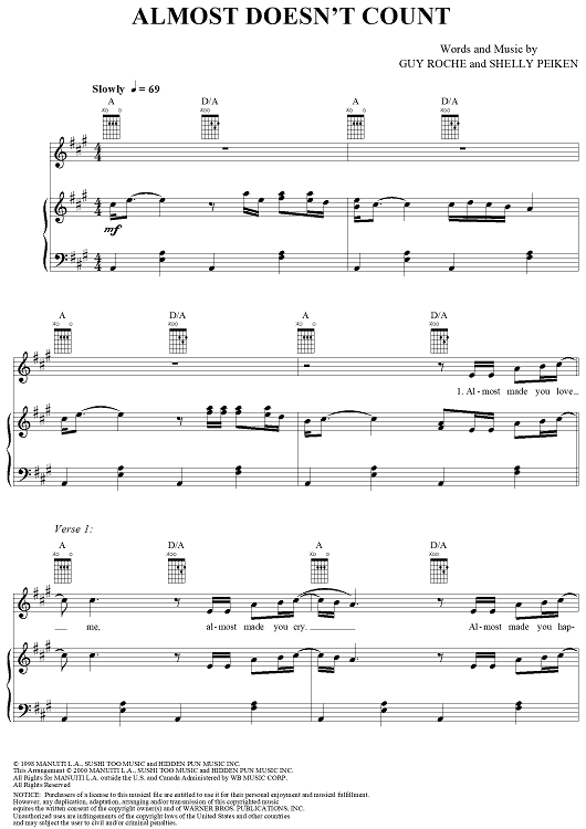 Digital Sheet Music for Almost Doesn't Count by Mark Wills, Shelly Peiken, Guy Roche scored for Piano/Vocal/Chords; id:236656