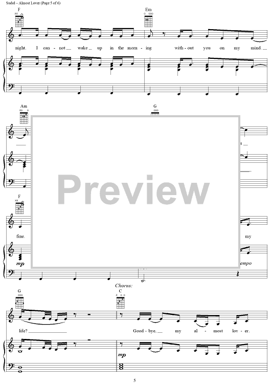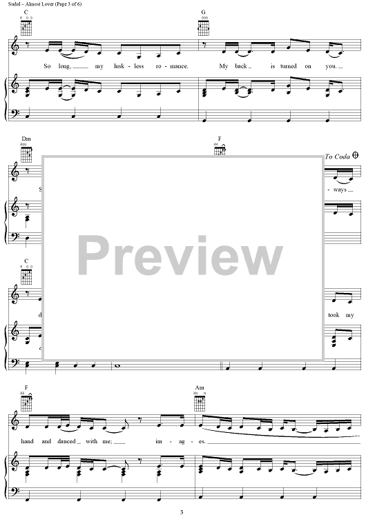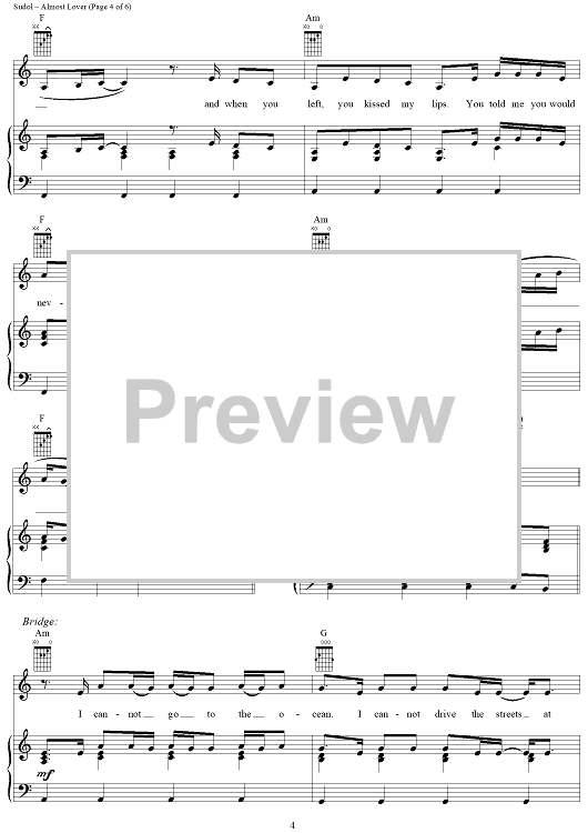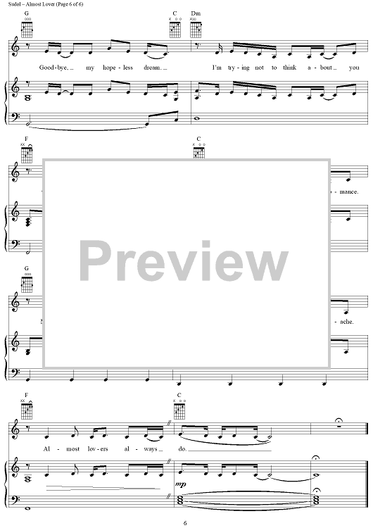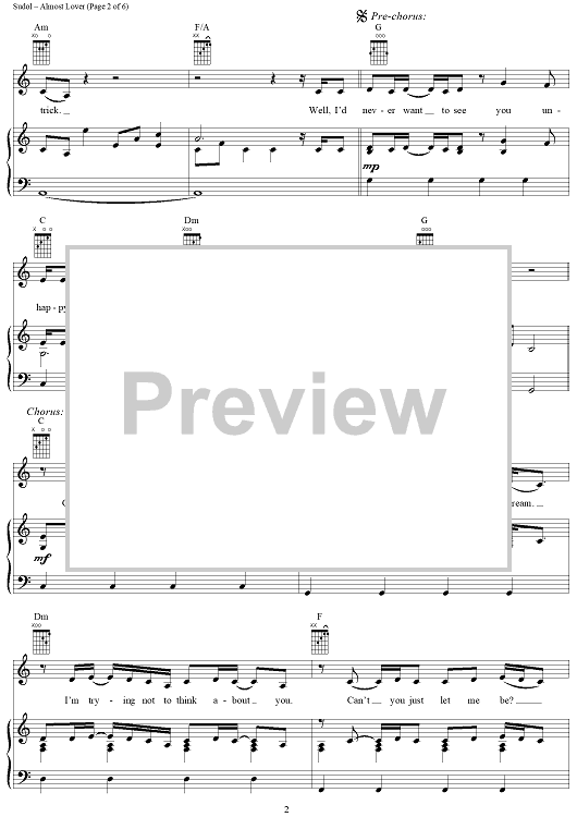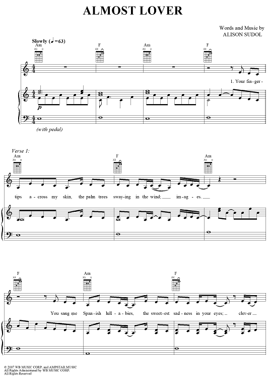 Digital Sheet Music for Almost Lover by Alison Sudol, A Fine Frenzy scored for Piano/Vocal/Chords; id:404842