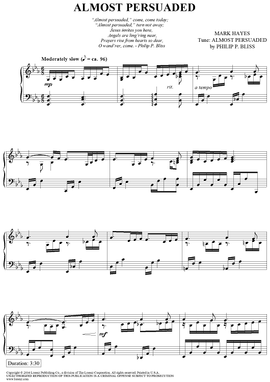 Digital Sheet Music for Almost Persuaded by Philip P. Bliss, Mark Hayes scored for Piano Solo; id:462624