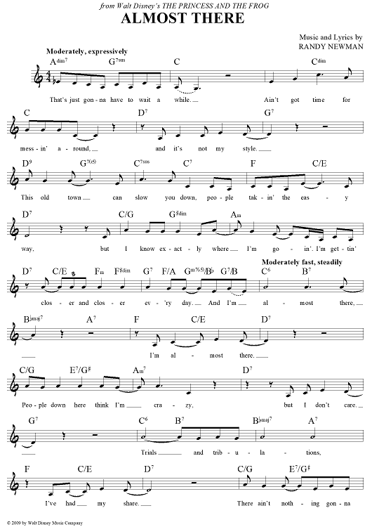 Digital Sheet Music for Almost There by Randy Newman scored for Lead Sheet; id:439626