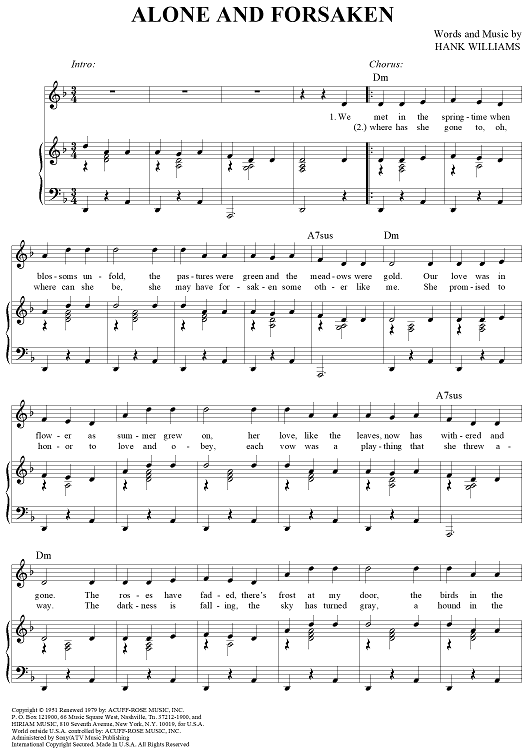 Digital Sheet Music for Alone and Forsaken by Hank Williams scored for Piano/Vocal/Chords; id:264197