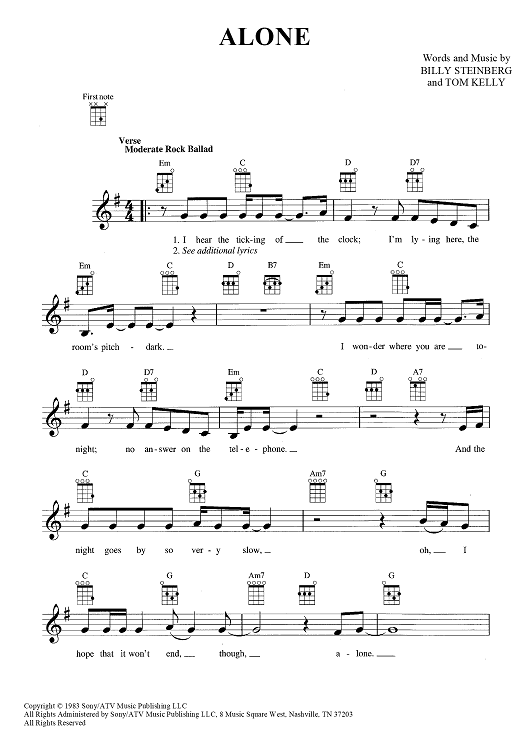 Digital Sheet Music for Alone by Heart, Billy Steinberg, Tom Kelly scored for Ukulele/Vocal; id:463705