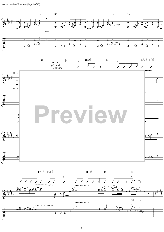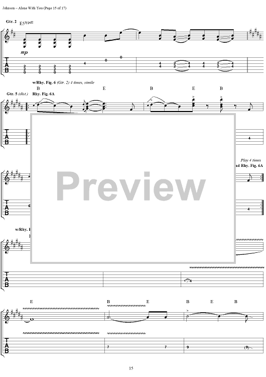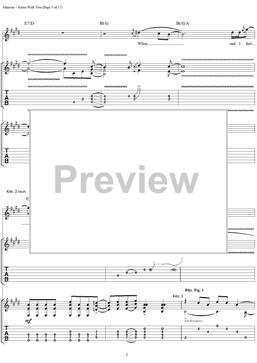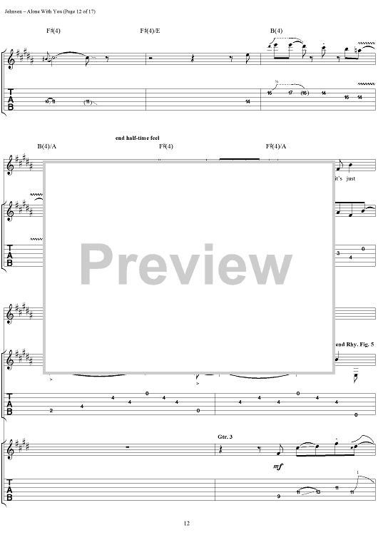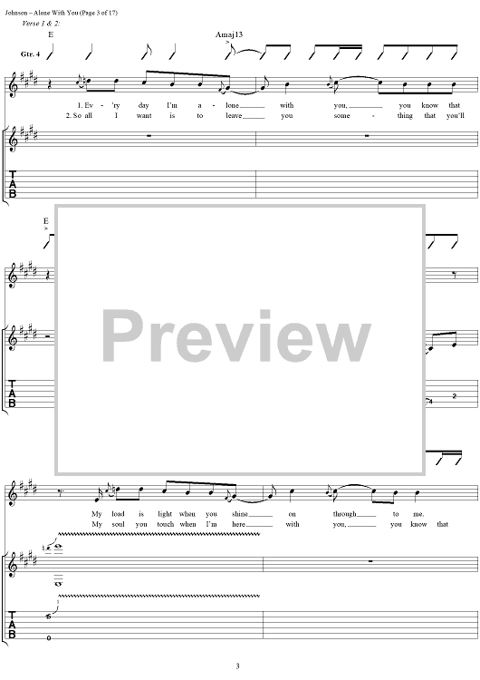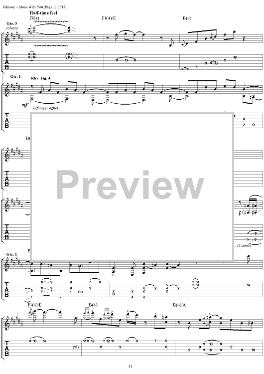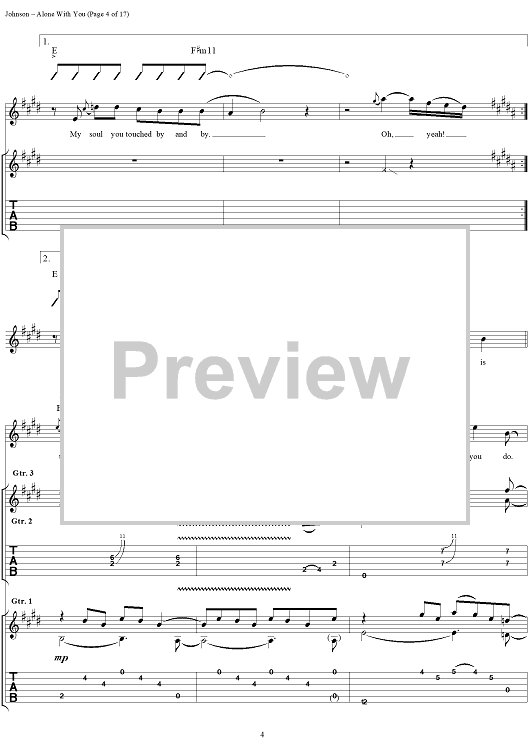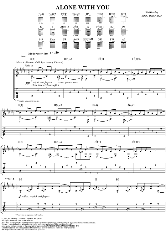 Digital Sheet Music for Alone With You by Eric Johnson scored for Guitar Tab/Vocal; id:119716