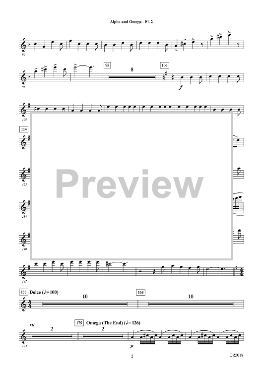 Digital Sheet Music for Alpha and Omega - Flute 2 by Soon Hee Newbold scored for Symphony Orchestra; id:510514