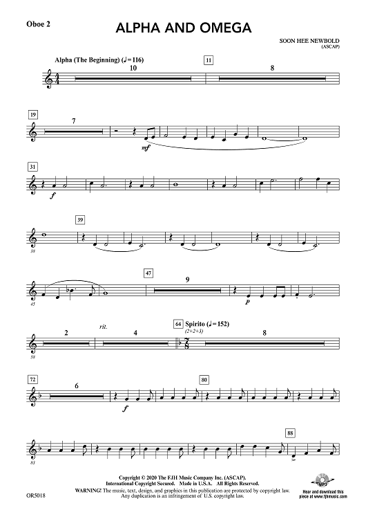 "Alpha and Omega - Oboe 2" Sheet Music by Soon Hee Newbold