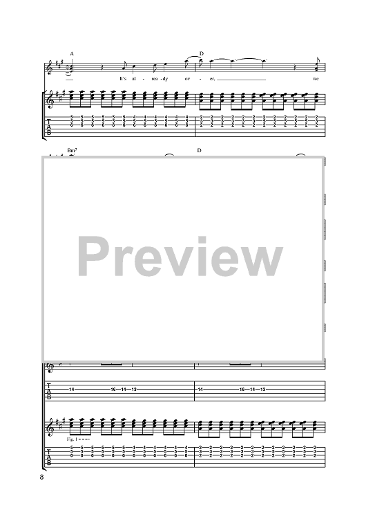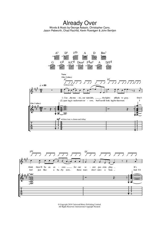 Digital Sheet Music for Already Over by George Astasio, John Bentjen, Christopher Cano, Orson, Jason Pebworth, Chad Rachild, Kevin Roentgen scored for Guitar Tab; id:391419