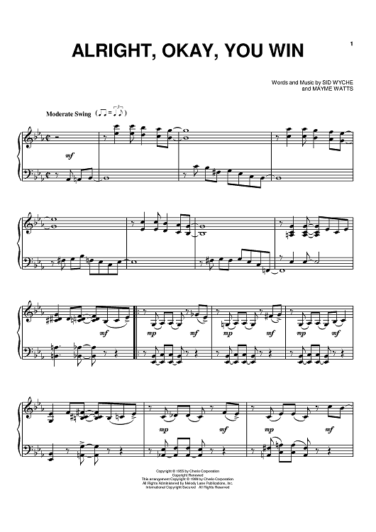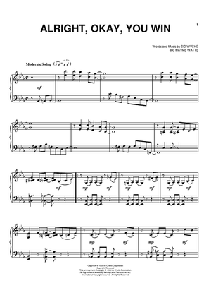 Digital Sheet Music for Alright, Okay, You Win by Peggy Lee, Mayme Watts, Sid Wyche scored for Piano; id:369966