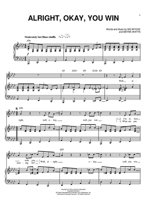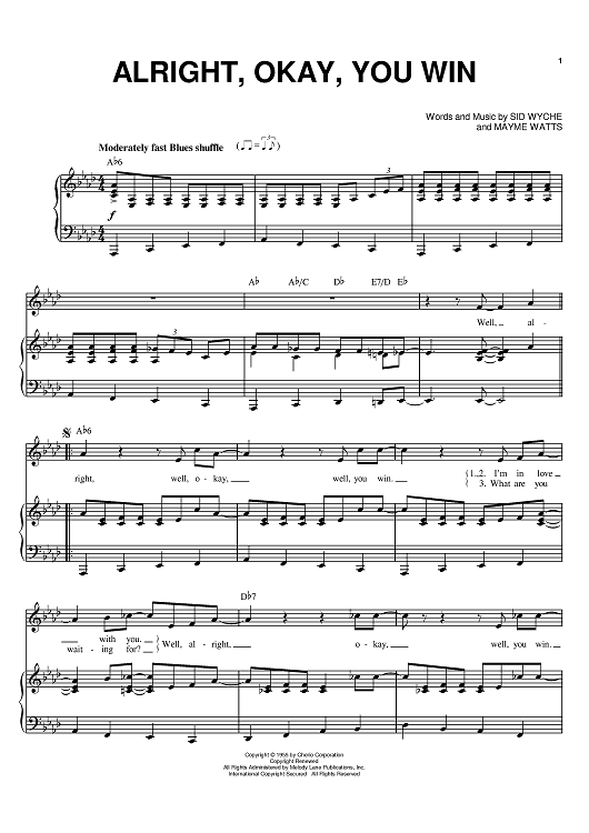 Digital Sheet Music for Alright, Okay, You Win by Peggy Lee, Mayme Watts, Sid Wyche scored for Piano/Vocal/Chords; id:370020