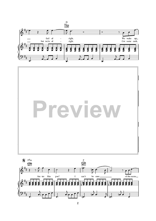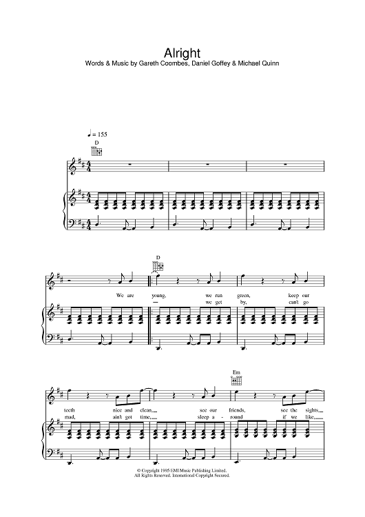 Digital Sheet Music for Alright by Gareth Coombes, Daniel Goffey, Michael Quinn, Supergrass scored for Piano/Vocal/Chords; id:377542