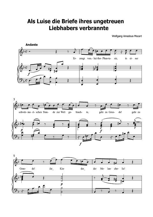 "Als Luise die Briefe ihres ungetreuen Liebhabers verbrannte" K.520, in d minor, for Voice and Piano