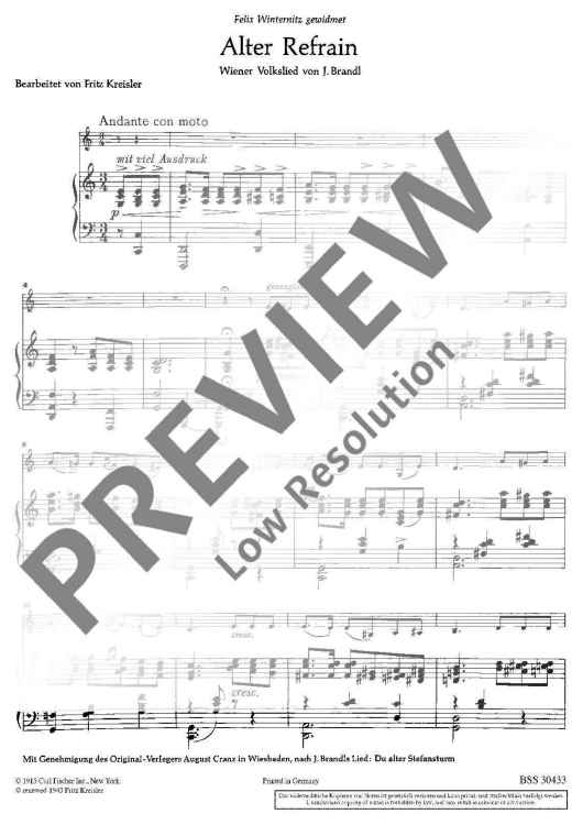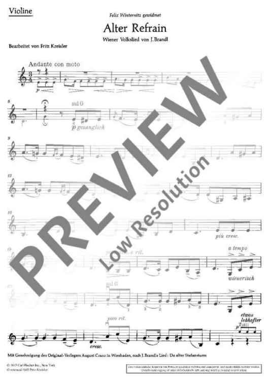 Digital Sheet Music for Alter Refrain: "Du alter Stefansturm" by Fritz Kreisler, Johann Brandl scored for Violin And Piano; id:471429