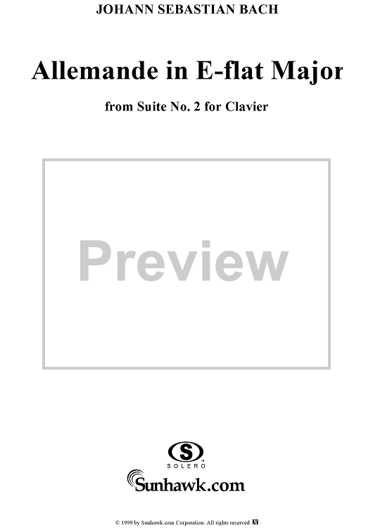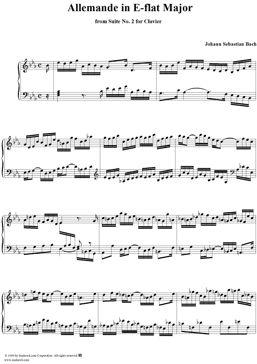 Digital Sheet Music for Alternate Allemande to Suite No. 2 for Clavier in E-Flat Major (BWV 819a) by Johann Sebastian Bach scored for Piano Solo; id:241503