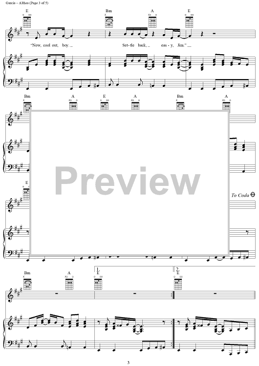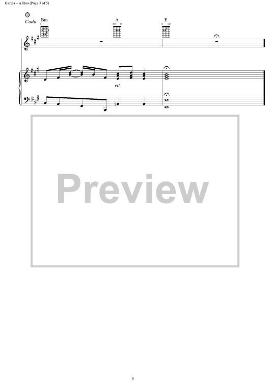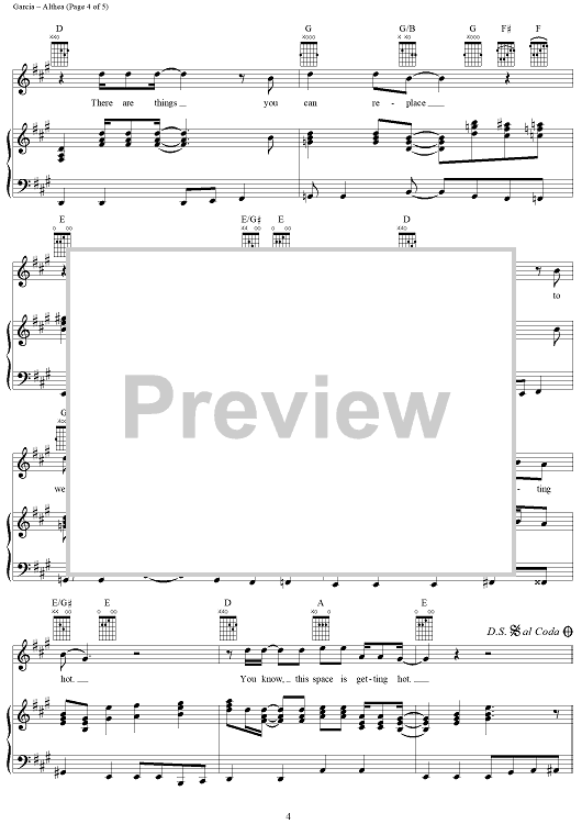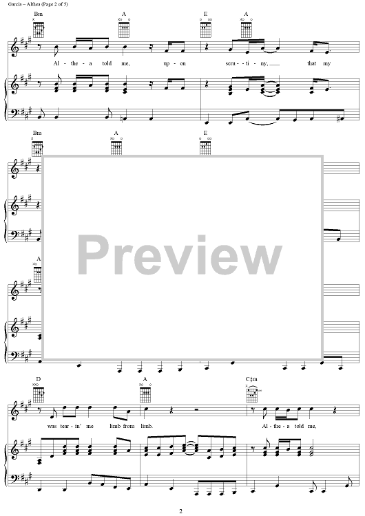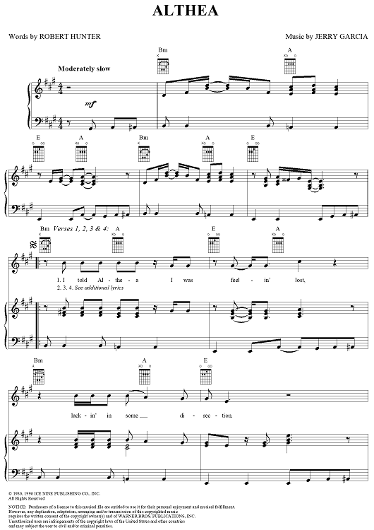 Digital Sheet Music for Althea by Jerry Garcia, Robert Hunter, Grateful Dead scored for Piano/Vocal/Chords; id:268927