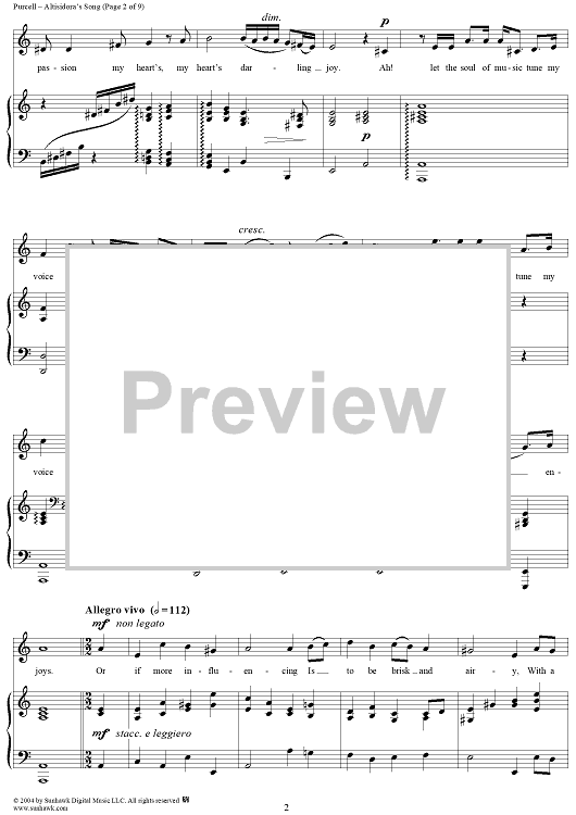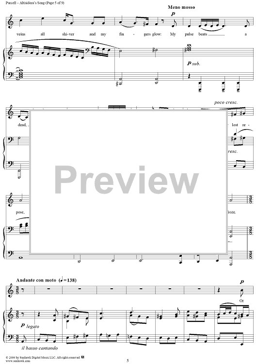 Digital Sheet Music for Altisidora's Song by Henry Purcell scored for Voice/Piano; id:303517