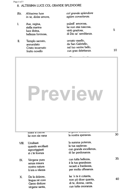 "Altissima luce col grande splendore - Score" Sheet Music by Unknown Writer