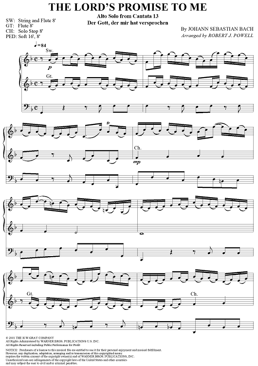 Digital Sheet Music for Alto Solo from Cantata 13 (The Lord's Promise to Me) by Robert J. Powell, Johann Sebastian Bach scored for Organ Solo; id:292883