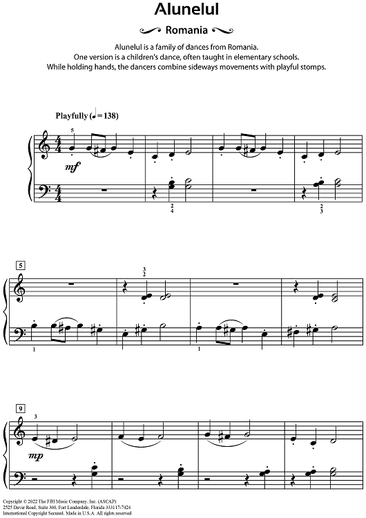 Digital Sheet Music for Alunelul (Romania) by Wynn-Anne Rossi scored for Piano Solo; id:500502