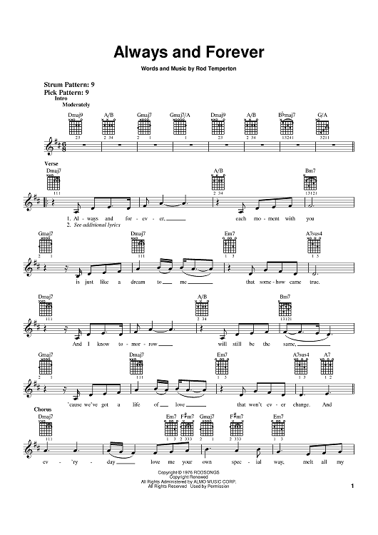 Digital Sheet Music for Always And Forever by Rod Temperton, Heatwave scored for Lead Sheet with Guitar Grids; id:383082