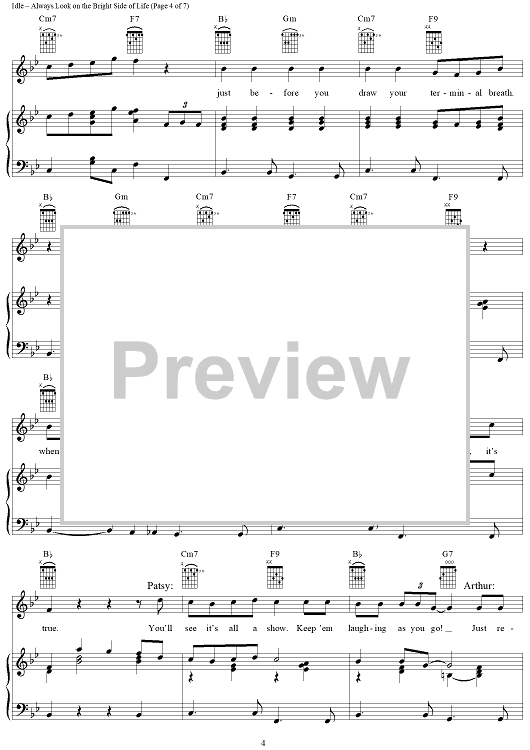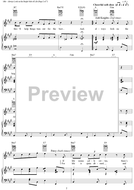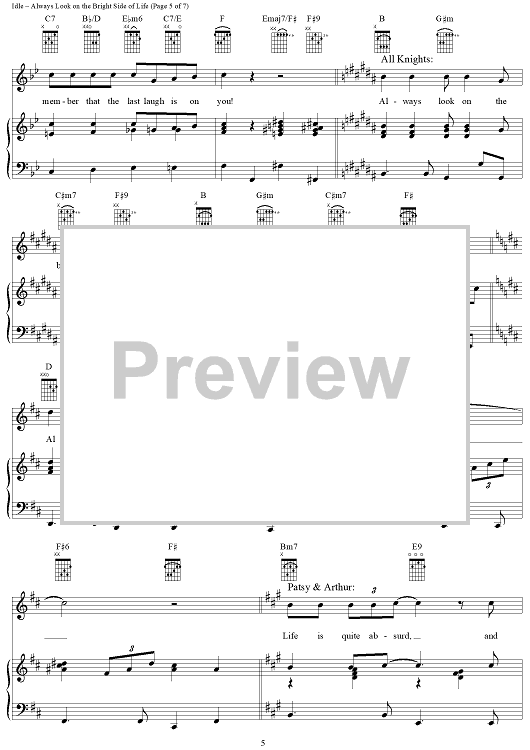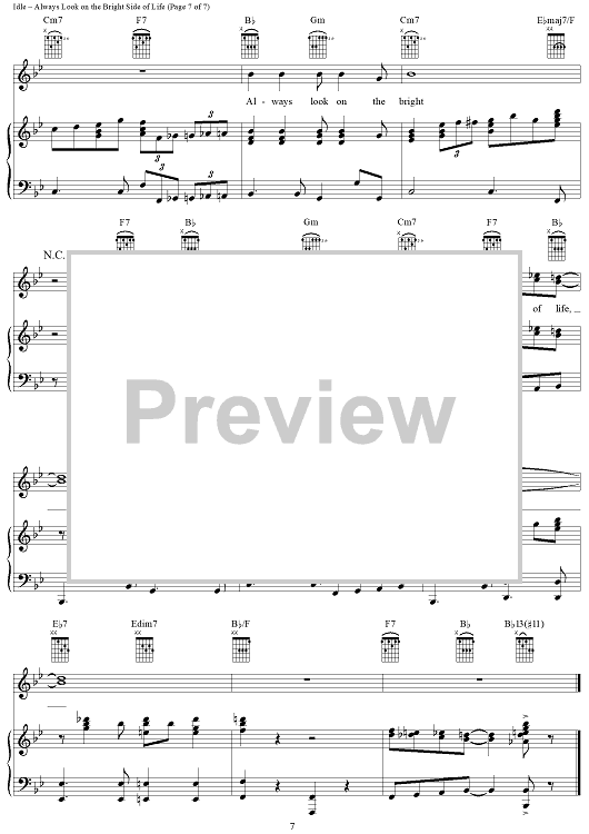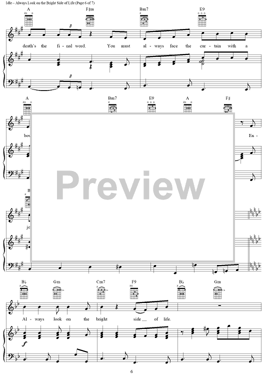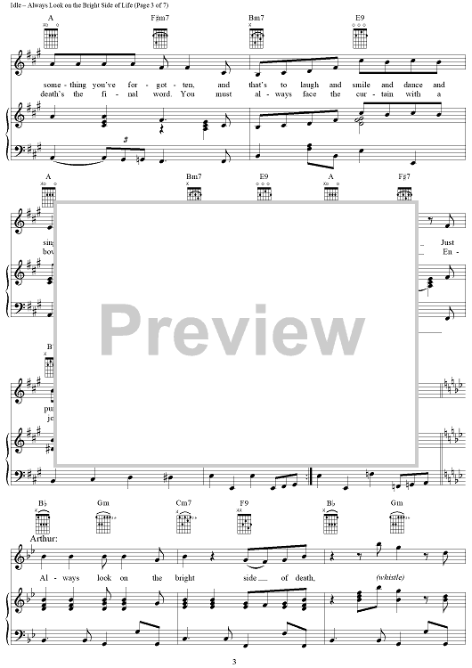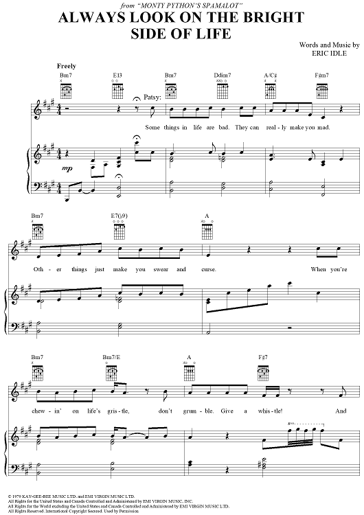 Digital Sheet Music for Always Look on the Bright Side of Life by Eric Idle scored for Piano/Vocal/Chords; id:385959