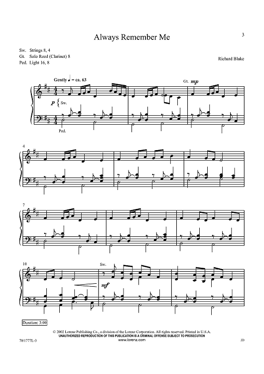 Digital Sheet Music for Always Remember Me by Richard Blake scored for Organ Solo; id:437672