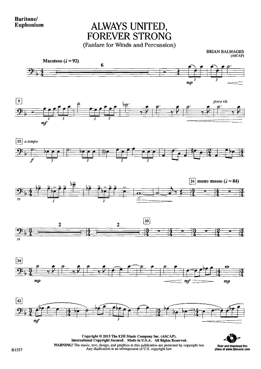 Digital Sheet Music for Always United, Forever Strong - Baritone/Euphonium by Brian Balmages scored for Concert Band; id:440320