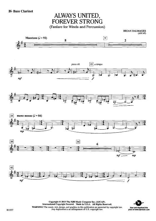 Digital Sheet Music for Always United, Forever Strong - Bb Bass Clarinet by Brian Balmages scored for Concert Band; id:440306