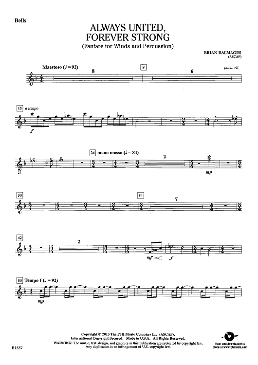 Digital Sheet Music for Always United, Forever Strong - Bells by Brian Balmages scored for Concert Band; id:440324